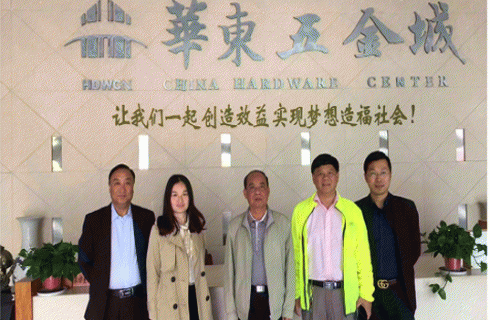 2019年5月10日上午,中國五金交電化工商業(yè)協(xié)會(huì )理事長(cháng)朱仁和在江蘇省工商聯(lián)五金機電商會(huì )秘書(shū)長(cháng)顧平的陪同下,蒞臨江蘇華東五金城視察指導工作。華東五金網(wǎng)總經(jīng)理王德干、江蘇易銷(xiāo)互聯(lián)網(wǎng)科技有限公司副總經(jīng)理李